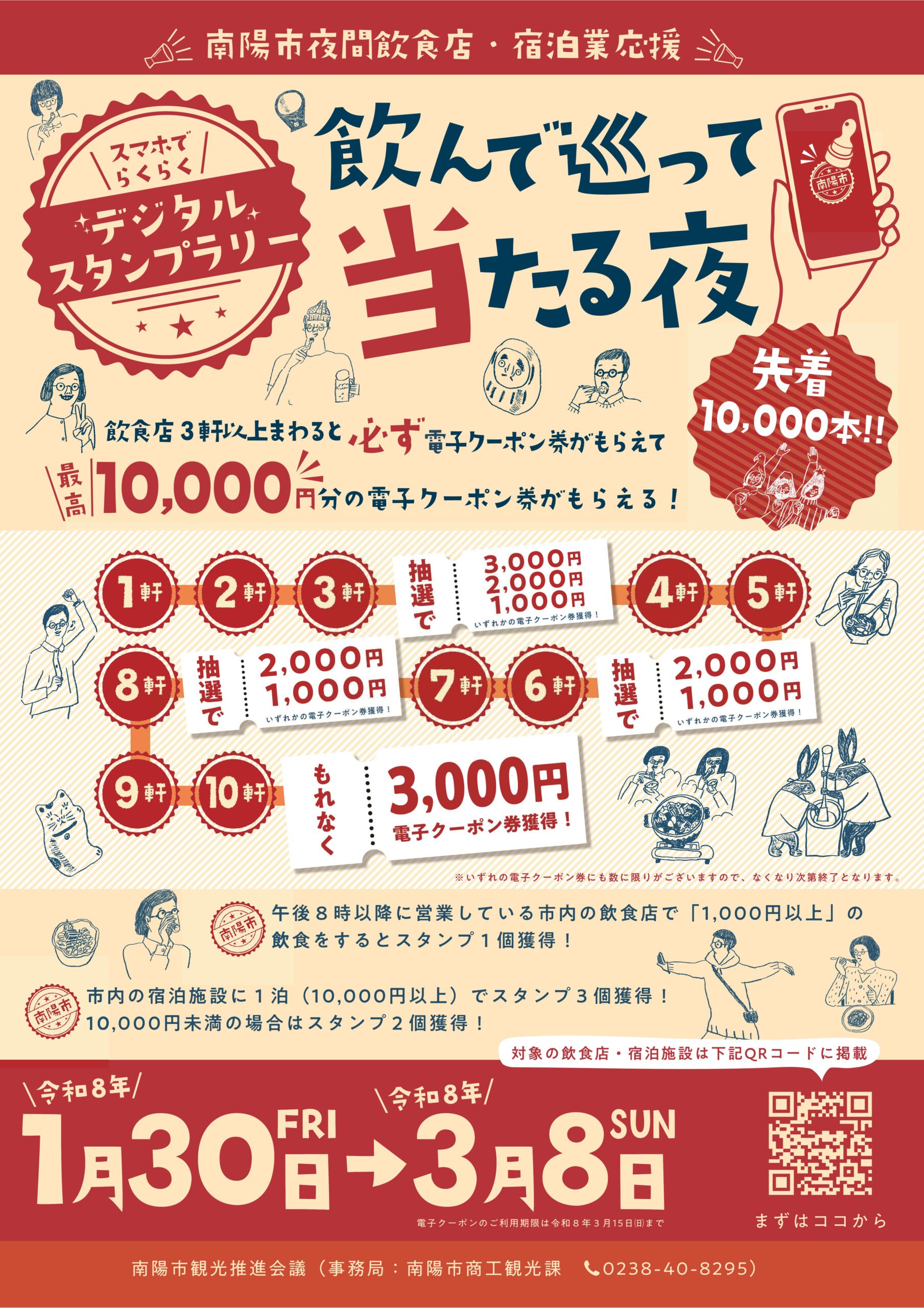 夜間飲食店などで利用できる電子クーポン券をGetして、お得に南陽の夜を満喫♬