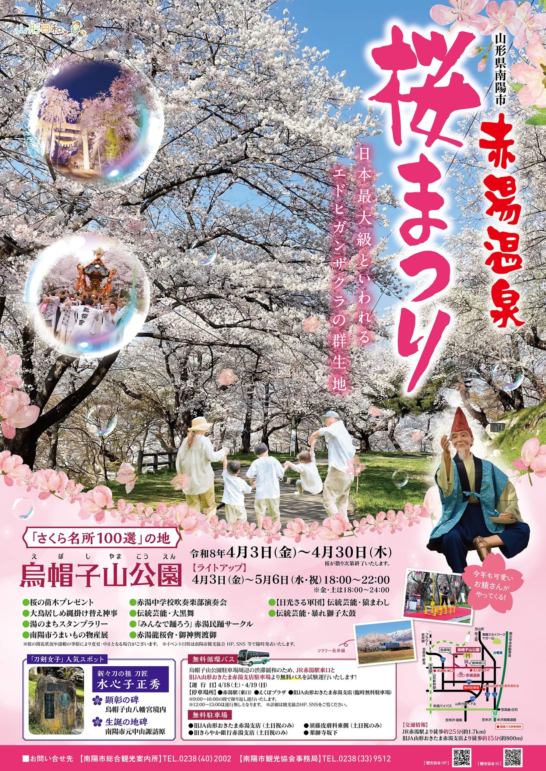 赤湯温泉桜まつり 4月3日(金)~4月30日(木)※桜が散り次第終了いたします。